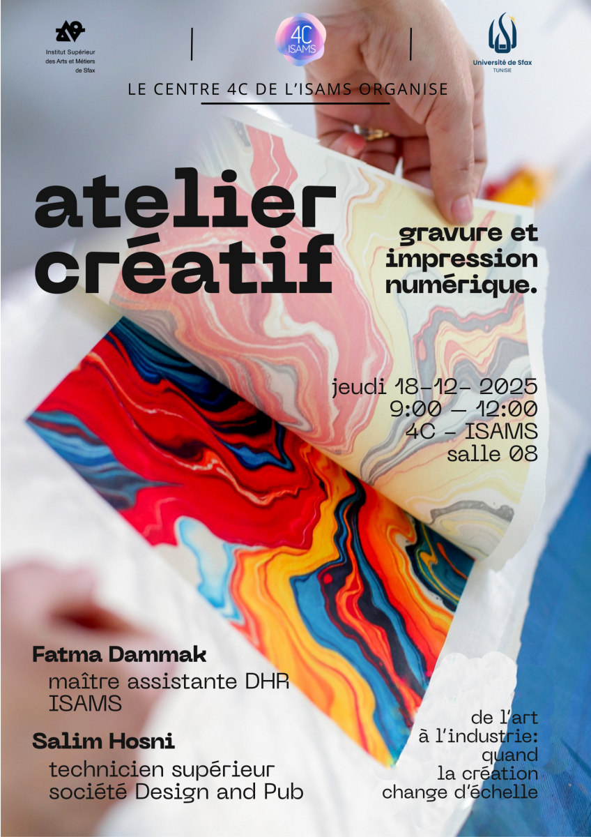 Dans le cadre de ses actions visant à renforcer l’ouverture des étudiants sur les métiers du futur, le Centre 4C-ISAMS a le plaisir d’organiser un atelier créatif intitulé: